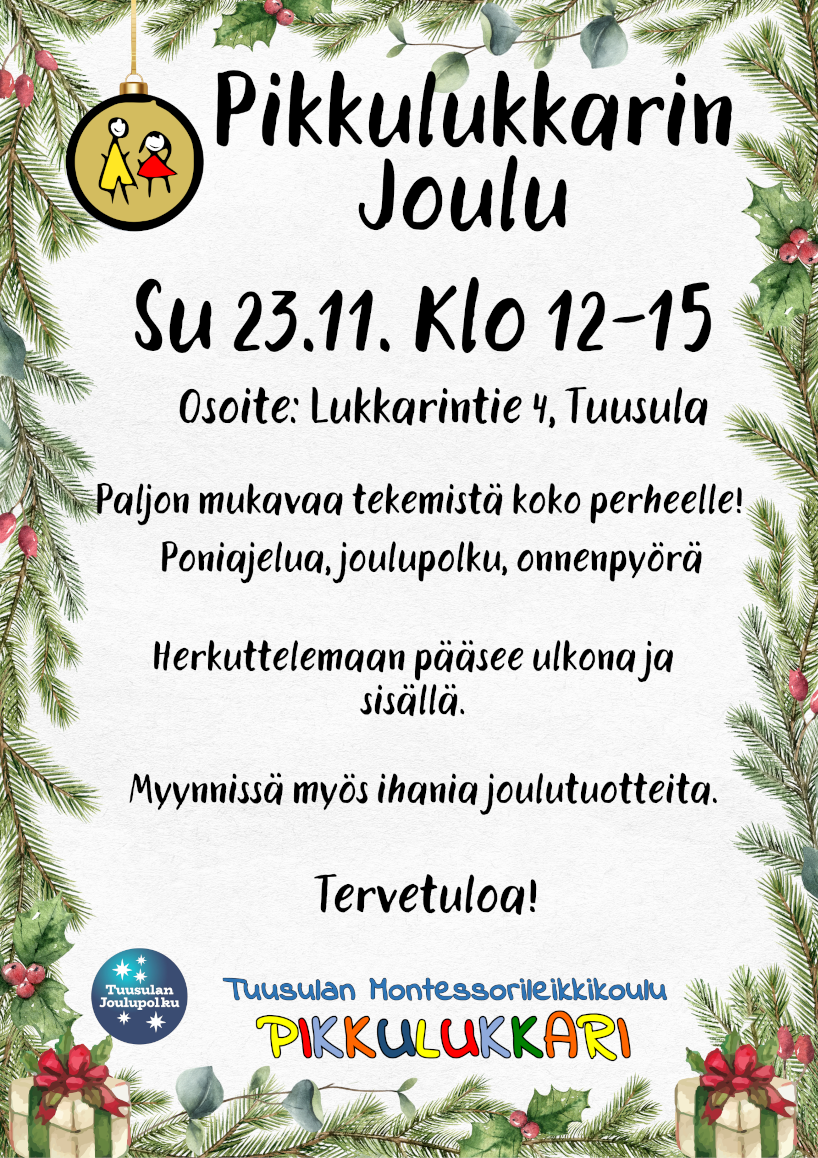 Tuusulan Montessorileikkikoulu Pikkulukkari on vuonna 1984 perustettu voittoa tavoittelematon yksityinen päiväkoti Tuusulan kirkonkylällä Keski-Uudellamaalla. 3-6 vuotiaat hoitolapset ja esikoululaiset saavat kasvaa rauhallisessa ympäristössä kahdessa puolipäiväisessä pienryhmässä. Montessori-kasvatusoppi tukee lapsen kouluvalmiuksien kehittymistä.