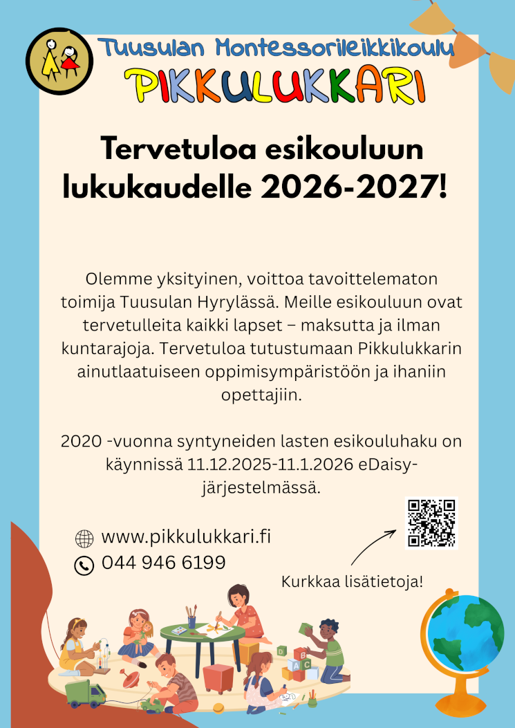 Tuusulan Montessorileikkikoulu Pikkulukkari on vuonna 1984 perustettu voittoa tavoittelematon yksityinen päiväkoti Tuusulan kirkonkylällä Keski-Uudellamaalla. 3-6 vuotiaat hoitolapset ja esikoululaiset saavat kasvaa rauhallisessa ympäristössä kahdessa puolipäiväisessä pienryhmässä. Montessori-kasvatusoppi tukee lapsen kouluvalmiuksien kehittymistä.